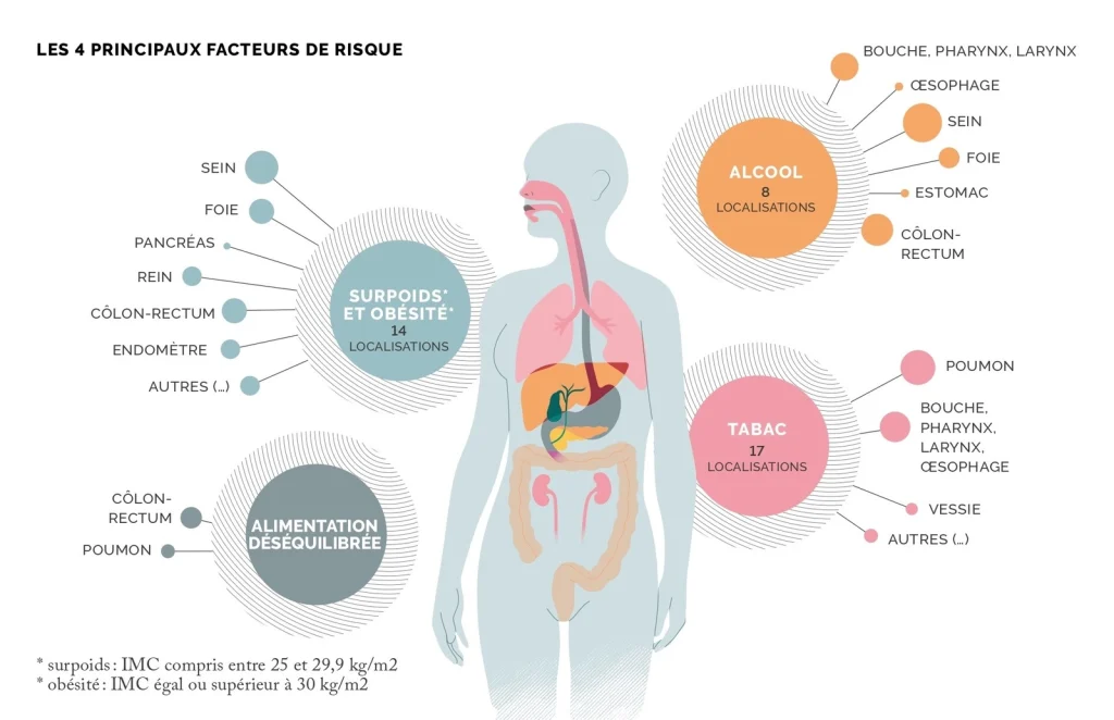 Cependant, d’autres facteurs de risques peuvent intervenir dans le développement d’un cancer du poumon, comme notamment la pollution atmosphérique. Les facteurs de risque fréquement incriminés sont le tabac pour 17 localisations différentes, le surpoids et l’obésité pour 14 localisations, l’alcool pour 8 localisations, et enfin une alimentation déséquilibrée pour deux localisations. Les pratiques diagnostiques peuvent également jouer un rôle. Le cancer de la thyroïde a d’ailleurs longtemps été concerné par la question du « surdiagnostic ». « L’utilisation de moyens d’imagerie de plus en plus précis a conduit à la détection de petites tumeurs indolentes n’évoluant pas pour la plupart vers des cancers agressifs », précise le Dr. Defossez.